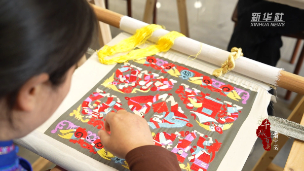 走进湖南省张家界市永定区王家坪镇马头溪村土家族刺绣非遗工坊,绣娘们围坐案前,飞针走线、凝神创作,省级非物质文化遗产代表性项目土家族刺绣代表性传承人张绣云在一旁全程指导,从制稿、临稿、配色到绣织,每一道工序都精益求精。