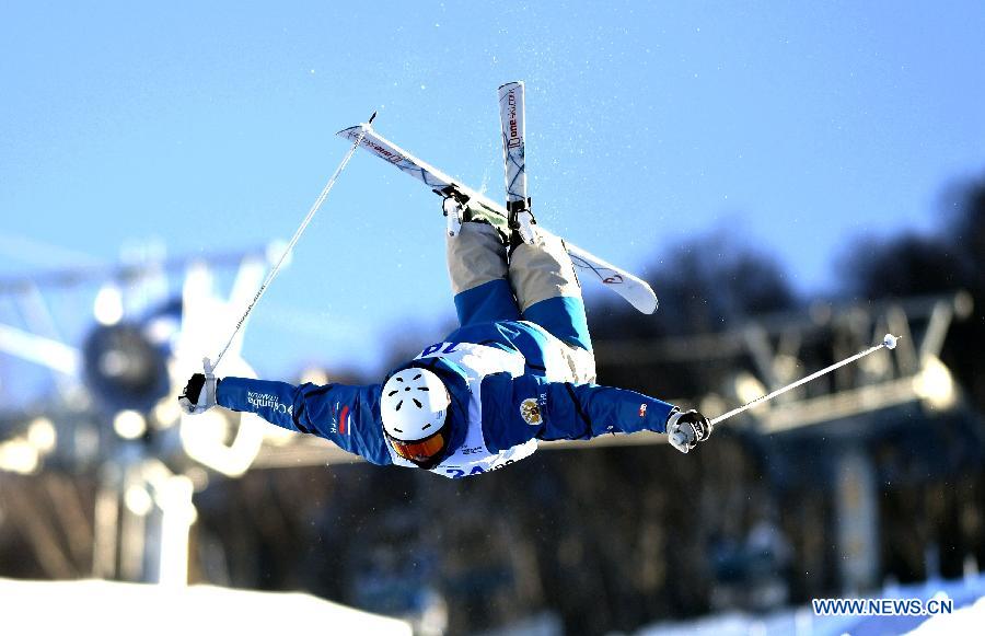 Andrei Makhnev of Russia competes during the men's Moguls on the Day 1 of the 2017-2018 Freestyle Skiing World Cup-Moguls & Aerials at the Thaiwoo ski resort in Chongli District of Zhangjiakou City, north China's Hebei Province, Dec. 21, 2017. (Xinhua/Wang Xiao)