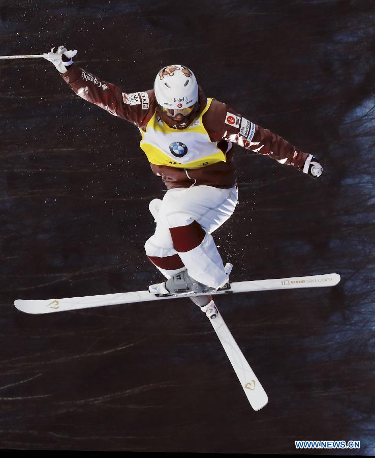 Mikael Kingsbury of Canada competes during the men's Moguls on the Day 1 of the 2017-2018 Freestyle Skiing World Cup-Moguls & Aerials at the Thaiwoo ski resort in Chongli District of Zhangjiakou City, north China's Hebei Province, Dec. 21, 2017. This picture has been rotated 90 degrees. (Xinhua/Meng Jing)