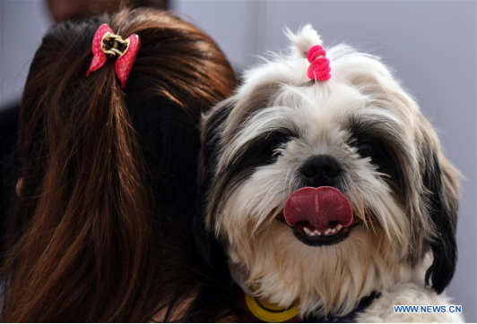 A dog is petted during a pet festival in Mumbai, India, on Dec. 17, 2017. (Xinhua/Stringer)