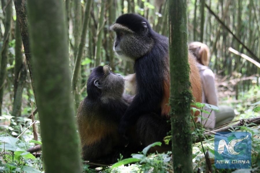VOLCANOES NATIONAL PARK, Rwanda, Dec. 31 (Xinhua) -- Golden monkey is listed as an endangered species by the International Union for Conservation of Nature (IUCN).