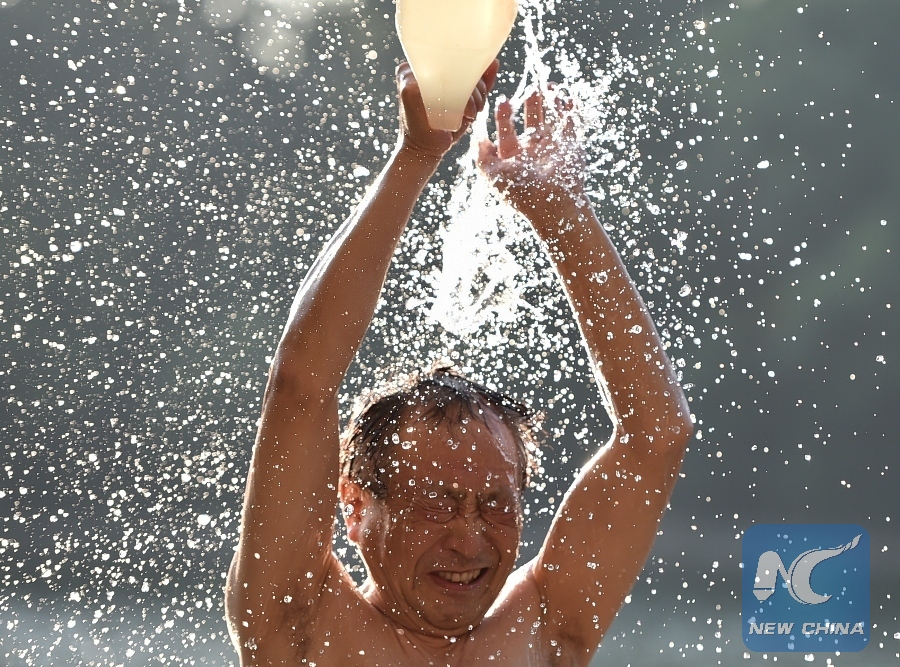A man cools himself before swimming in Hefei, capital of east China's Anhui Province, July 20, 2017. (Xinhua/Yang Xiaoyuan)