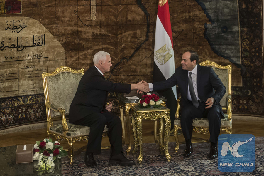 CAIRO, Jan. 20 (Xinhua) -- U.S. Vice President Mike Pence on Saturday arrived in Cairo, the first destination of his Middle East tour covering Egypt, Jordan and Israel, Egyptian state-run MENA news agency reported.