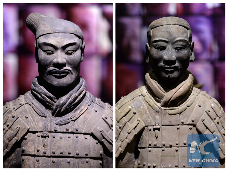 Terracotta warriors are the best-known historical relics in Shaanxi. They were unearthed from the tomb of Emperor Qinshihuang, China's first emperor, who lived between 259-210 B.C.