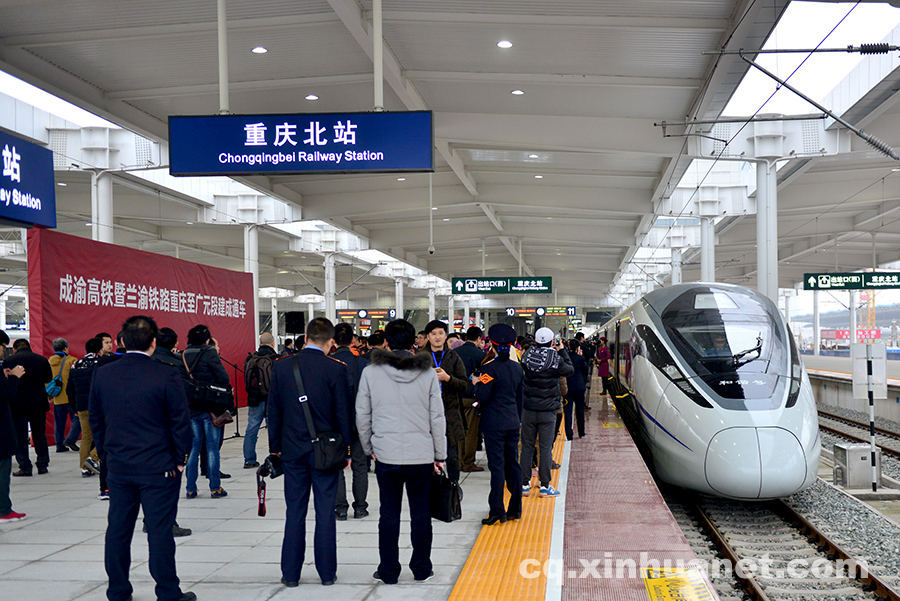 A high-speed train is ready for operation at the Chongqingbei Railway Station in southwest China's Chongqing Municipality on Dec. 26, 2015. The high speed rail (HSR) connecting Chengdu and Chongqing, both in southwest China, was open to operation on Saterday. The Chengdu-Chongqing high speed railway is 308 kilometers long with the operation speed of 300 kilometers per hour. (www.cq.xinhuanet.com/ Li Xiangbuo)