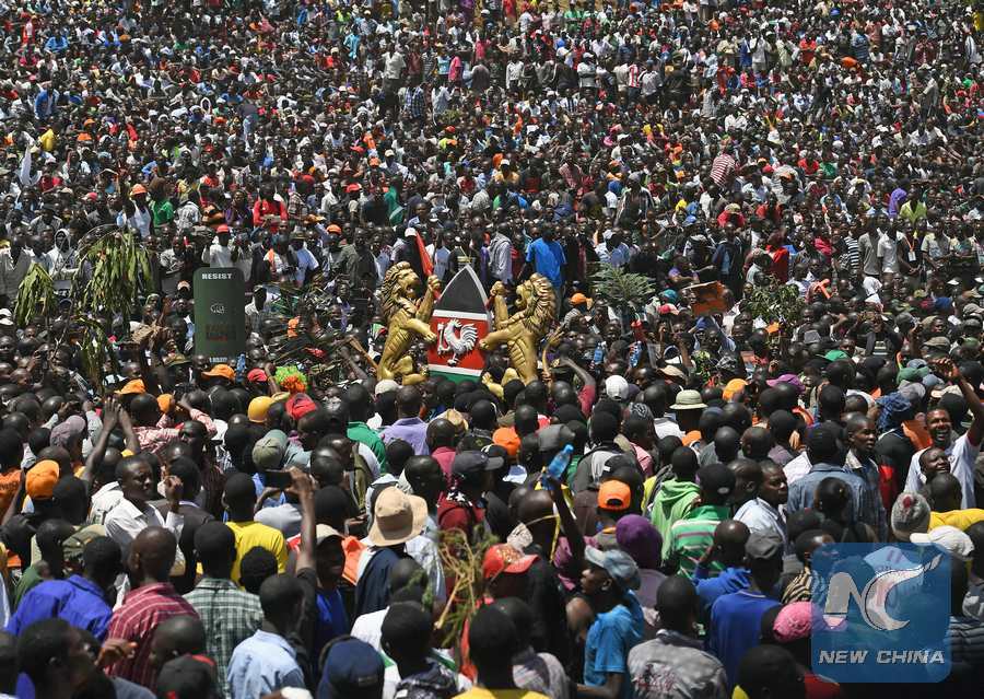 NAIROBI, Jan. 30 (Xinhua) -- Kenya's main opposition party, National Super Alliance (NASA), on Tuesday "swore in" its leader Raila Odinga as "People's President" amid jubilation from thousands of supporters who witnessed the ceremony at a public park in the capital of Nairobi.