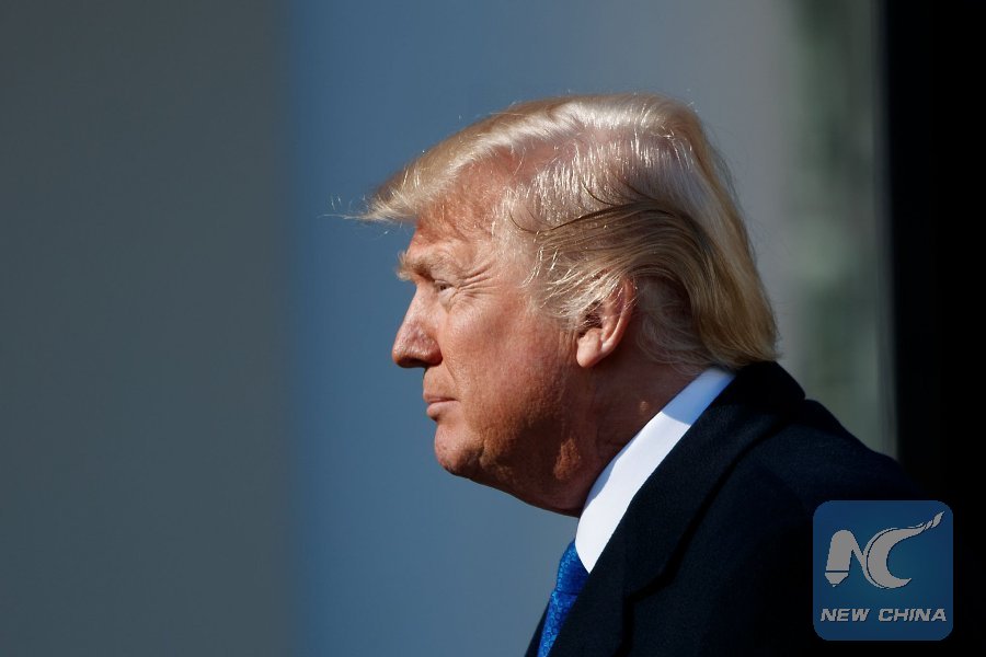 U.S. President Donald Trump arrives to speak to March for Life participants and pro-life leaders at the Rose Garden of the White House in Washington D.C., the United States, on Jan. 19, 2018. (Xinhua/Ting Shen)