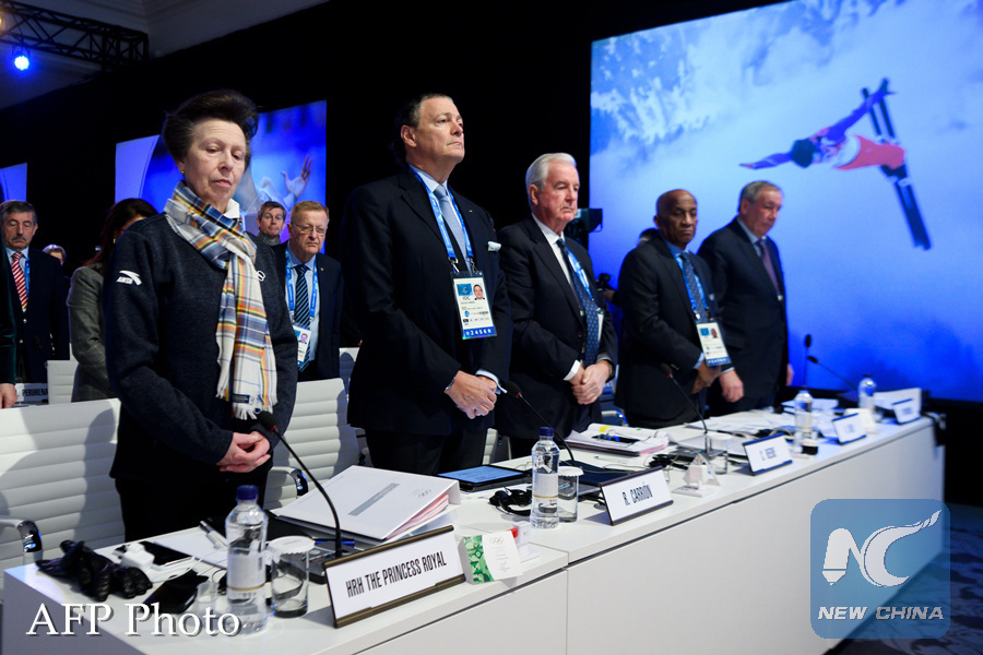 International Olympic Committee (IOC) members (From L) Britain's Princess Anne, Puerto Rico's Richard Carrion Britain's Craig Reedie, Barbados' Austin Sealy and Russia's Shamil Tarpischev stand during an IOC session prior the Pyeongchang 2018 Winter Olympic Games, on February 6, 2018 in Pyeongchang. (AFP PHOTO)