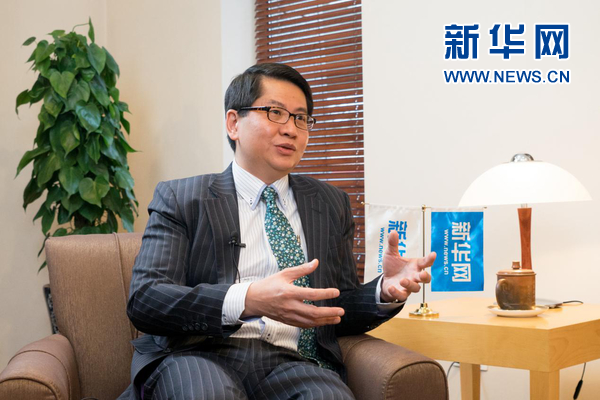 Singaporean Ambassador to China Stanley Loh Ka Leung takes an exclusive interview with Xinhuanet in Beijing, capital of China, March 7, 2018. (Xinhuanet photo)