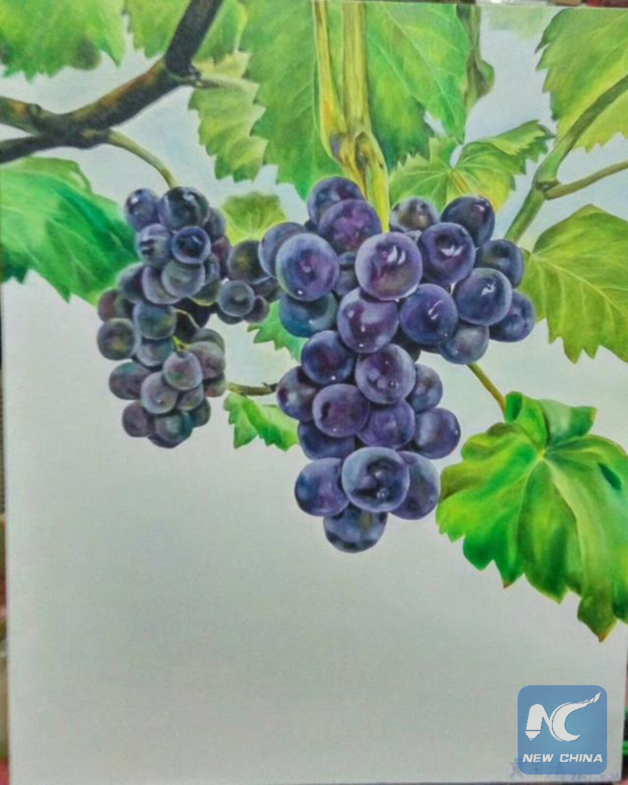 A painting of grapes drawn by Huang Yuqing in late 2017. (Xinhua)