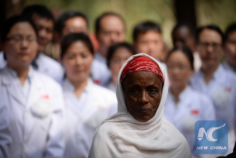 File photo shows Chinese diplomats, members of the Chinese medical team and Ethiopian villagers attend a commemoration ceremony at the tomb of Mei Gengnian in Jimma, April 4, 2016. (Xinhua/Michael Tewelde)