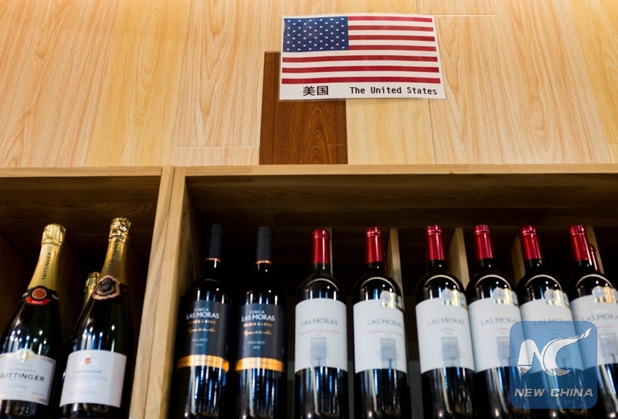 The U.S. flag is seen in the wine section of a supermarket in Beijing, China, April 5, 2018. (Xinhua/REUTERS)