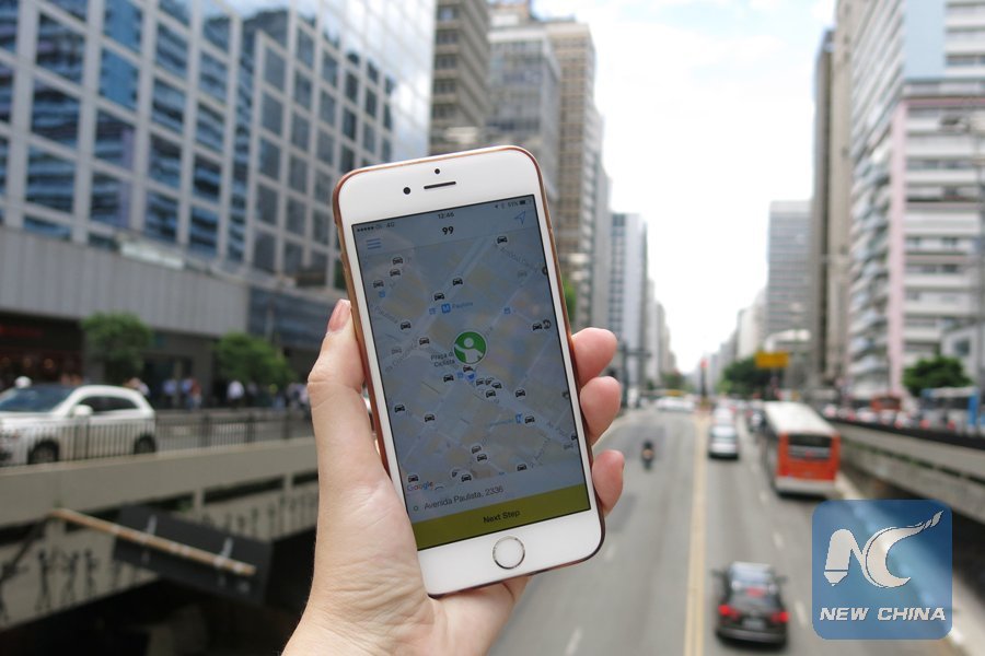 A user of Didi Chuxing App. showed her cell phone in San Paulo, Brazil. (Xinhua Photo)