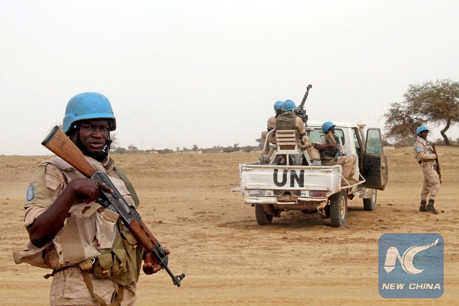 File Photo: UN peacekeepers stand guard in the northern town of Kouroume, Mali, May 13, 2015. (Xinhua/REUTERS)