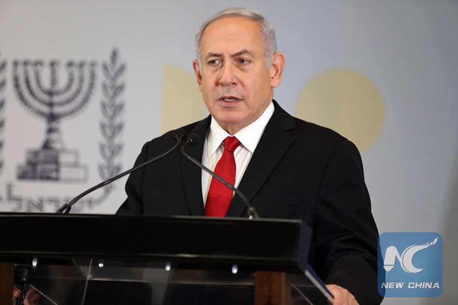 Israeli Prime Minister Benjamin Netanyahu addresses a press conference regarding the Polish Holocaust law in Tel Aviv, Israel, on June 27, 2018. (Xinhua)