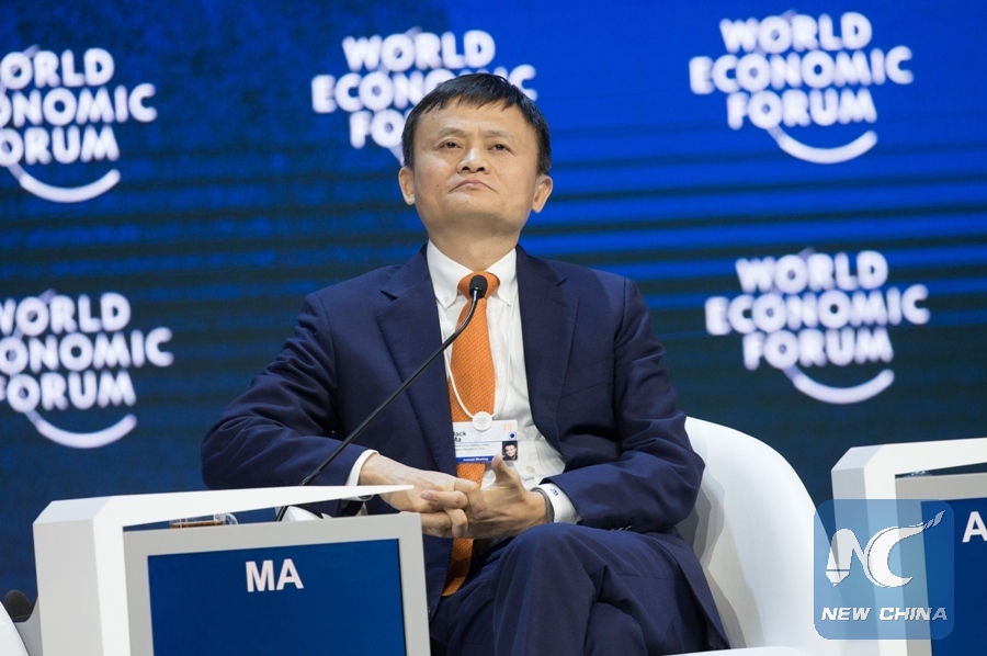Jack Ma, founder and chairman of China's e-commerce giant Alibaba Group, attends a plenary session on E Commerce during the 48th annual meeting of the World Economic Forum (WEF) in Davos, Switzerland, Jan. 24, 2018. (Xinhua/Xu Jinquan)