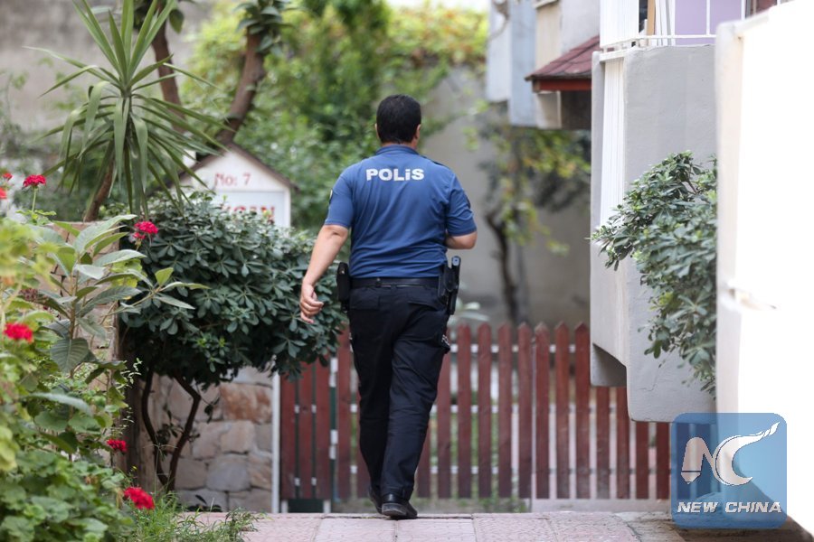 A Turkish police officer walks near the house of U.S. Pastor Andrew Brunson (unseen) prior to his arrival at his house on July 25, 2018 in Izmir, Turkey. (AFP Photo)