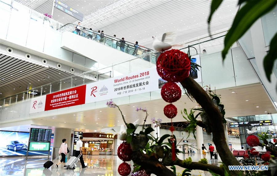 Photo taken on Sept. 12, 2018 shows Terminal 2 of Guangzhou Baiyun International Airport in south China's Guangdong Province. (Xinhua/Deng Hua)