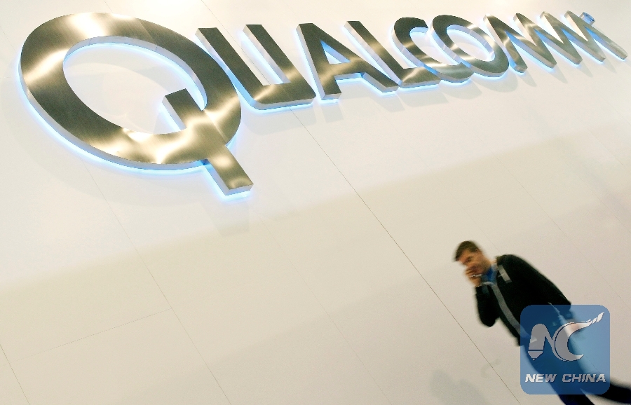 File Photo: A man walks past a Qualcomm advertising logo at the Mobile World Congress at Barcelona, Feb. 27, 2013. (Xinhua/REUTERS)