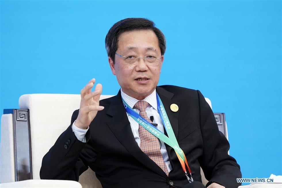 Xu Lirong, chairman of the board of China COSCO Shipping Corporation Limited, speaks at the Parallel Session on Trade and Innovation of the Hongqiao International Economic and Trade Forum in Shanghai, east China, Nov. 5, 2018.