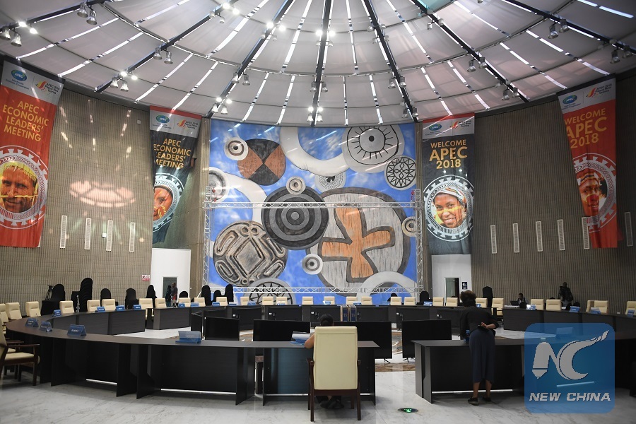 PORT MORESBY, Nov. 14 (Xinhua) -- The International Convention Center where APEC Senior Officials' meeting was held here was a building with distinctive Papua New Guinean (PNG) style.