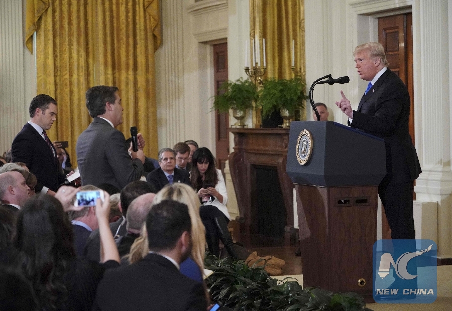 File Photo: U.S. President Donald Trump points to journalist Jim Acosta from CNN during a post-election press conference in the East Room of the White House in Washington, D.C. on Nov. 7, 2018. (Xinhua/AFP)