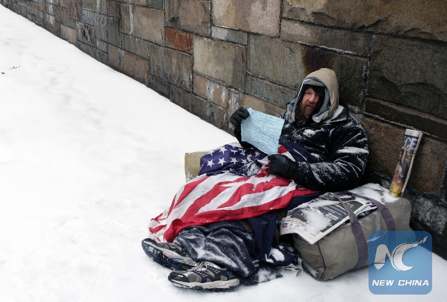 File Photo: A homeless man begs in a street in New York, March 16, 2007. (Xinhua/Hou Jun)