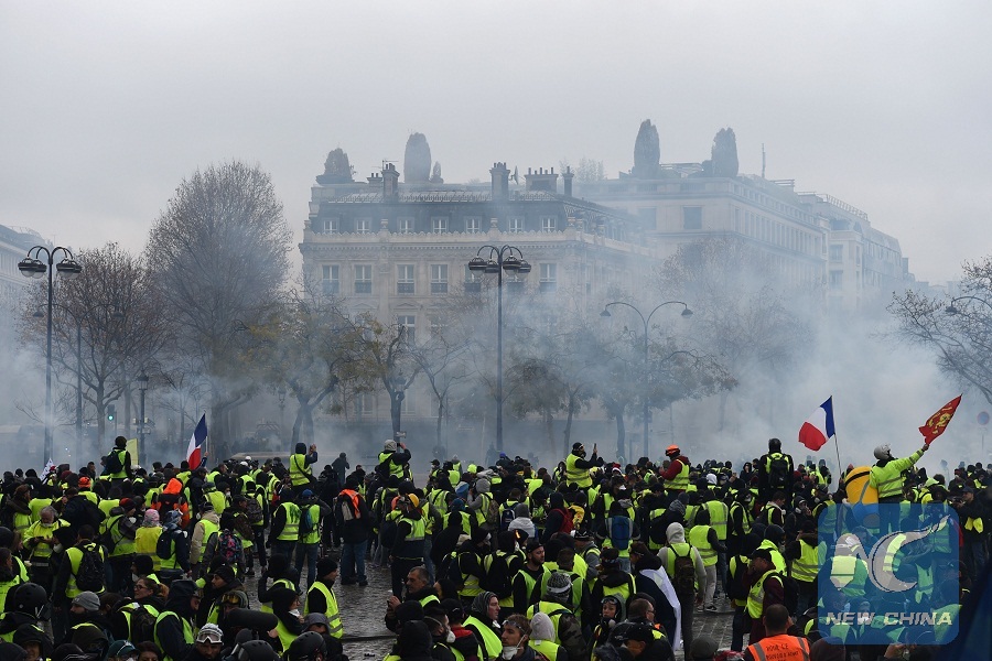 PARIS, Dec. 1 (Xinhua) -- Violence erupted early Saturday in a fresh demonstration by hundreds of French protesters angry at high fuel prices.