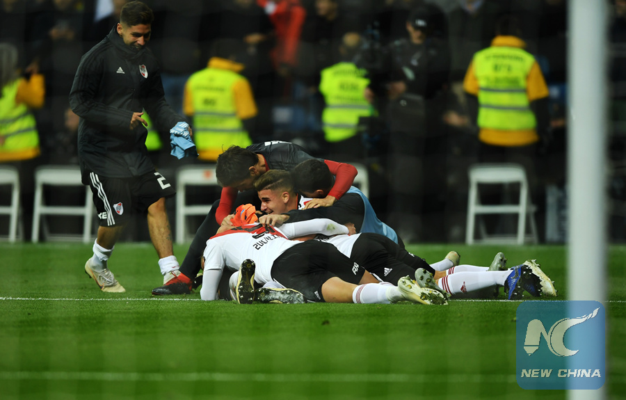MADRID, Dec. 10 (Xinhua) -- With the final whistle blown, River Plate's substitutes, coaches and matchday staff all rushed on to the pitch, hugging their exhausted players in front of a cheering crowd.
