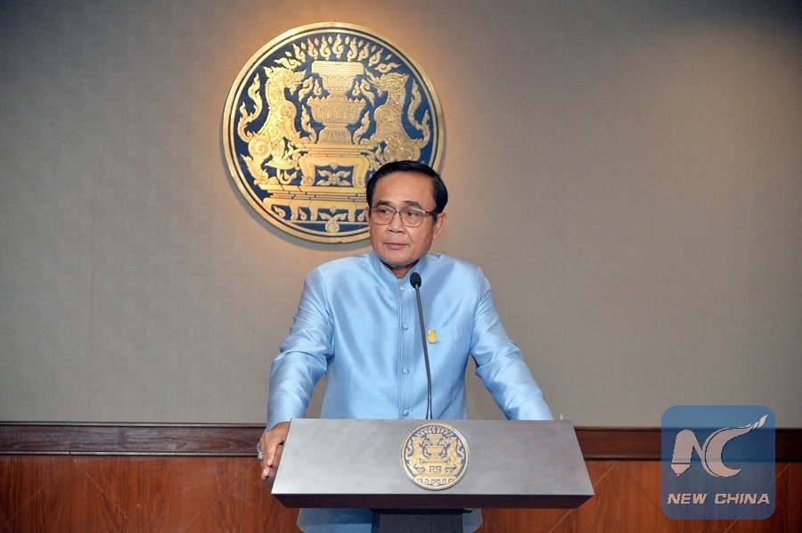 File Photo: Thai Prime Minister Prayut Chan-o-cha speaks to reporters after a meeting of the National Council for Peace and Order (NCPO) at the Government House in Bangkok, Thailand, Aug. 28, 2018. (Xinhua/Thai Government House)