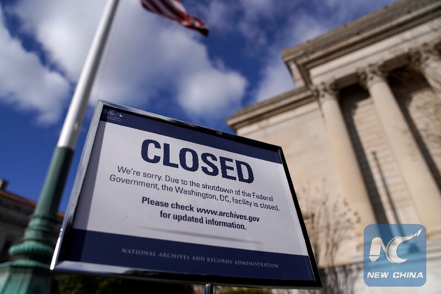 A sign declares the National Archive is closed due to a partial federal government shutdown in Washington, U.S., Dec. 22, 2018. (Xinhua/REUTERS)