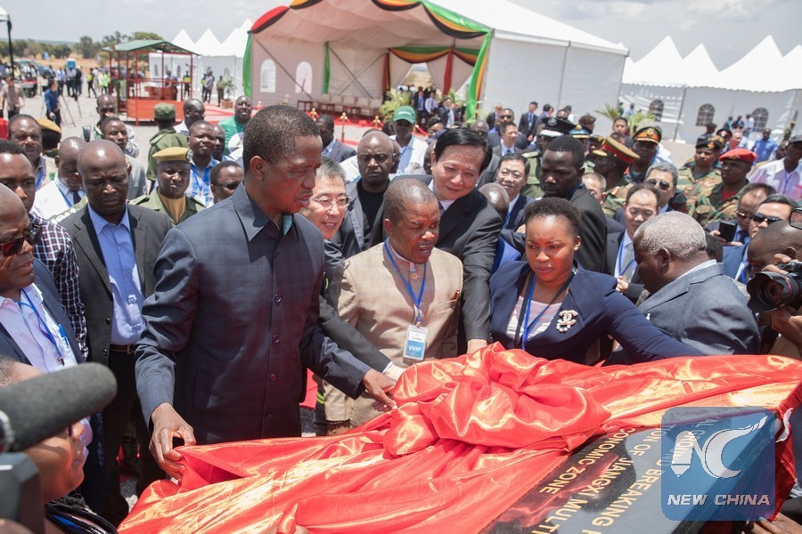 Zambian President Edgar Lungu inaugurates the Jiangxi Multi-Facility Economic Zone in Chibombo district, Zambia, Nov. 21, 2018. A consortium of Chinese firms will construct a Multi-Facility Economic Zone in central Zambia's Chibombo district, with President Edgar Lungu saying the project will go a long way in helping the country in its endeavor to ensure value addition to local products. It will cover 600 hectares of land, with an initial investment of 300 million U.S. dollars in the first phase which will create more than 5,000 jobs. (Xinhua)