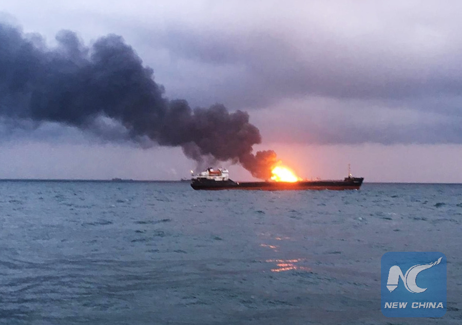 MOSCOW, Jan. 21 (Xinhua) -- At least 11 people were killed after two ships caught fire in the Kerch Strait connecting the Black Sea and the Sea of Azov, Russia's Federal Agency of Maritime and River Transport (Rosmorrechflot) said Monday.