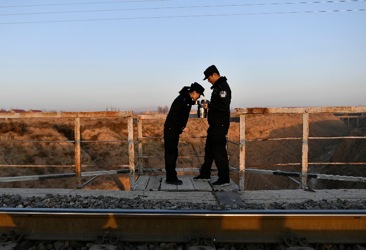 Gou with the police station of Liwang Railway Station in Haiyuan County patrols the railway line on his workdays to ensure the safety of the passing trains, whereas, Luo works at the police station of Tongxin Railway Station, which is 36 km away in neighboring Tongxin County.