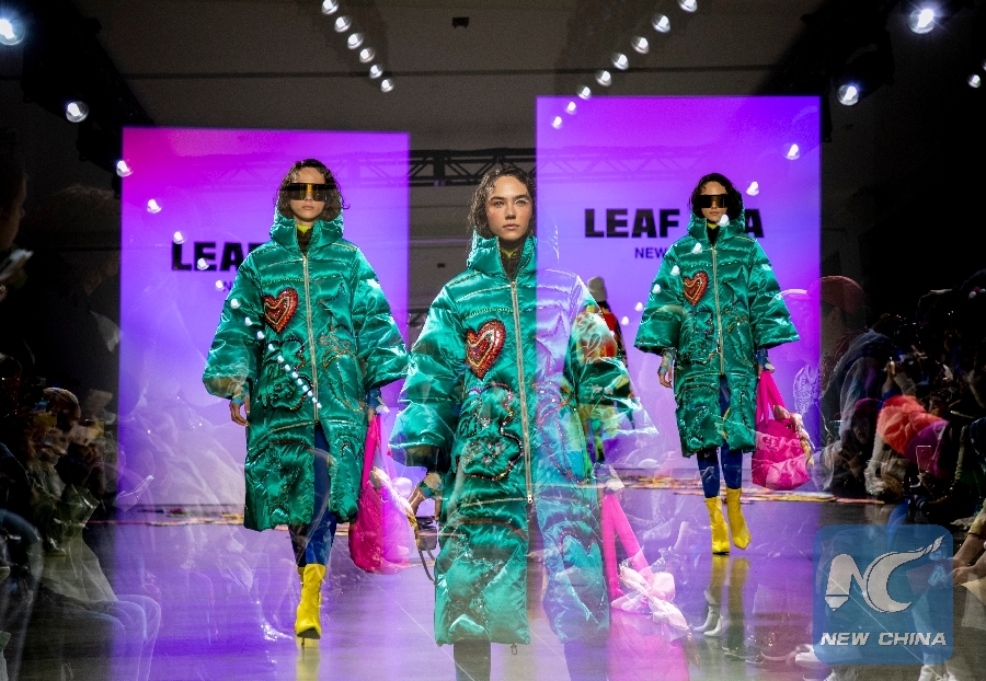 A model presents a creation of LEAF XIA Fall/Winter 2019 collection during the New York Fashion Week in New York, the United States, on Feb. 13, 2019. (Xinhua/Wang Ying)