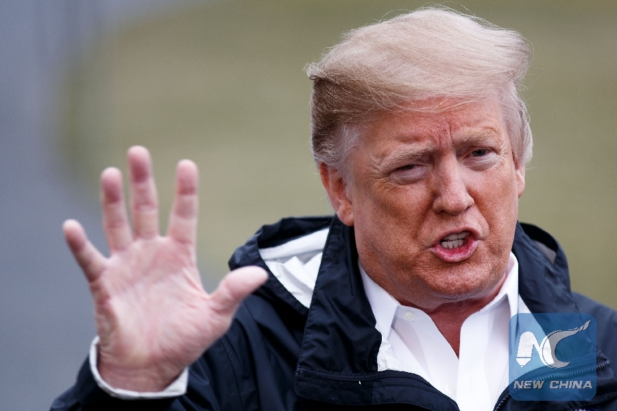 File Photo: U.S. President Donald Trump speaks to reporters before leaving for Alabama to survey areas devastated by powerful tornadoes, in Washington D.C., the United States, on March 8, 2019. (Xinhua/Ting Shen)
