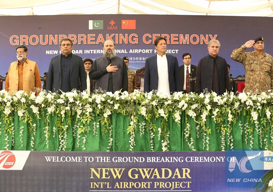 Pakistani Prime Minister Imran Khan (3rd R, front) attends the groundbreaking ceremony of the new Gwadar International Airport in Gwadar, Pakistan, on March 29, 2019. (Xinhua/Liu Tian)