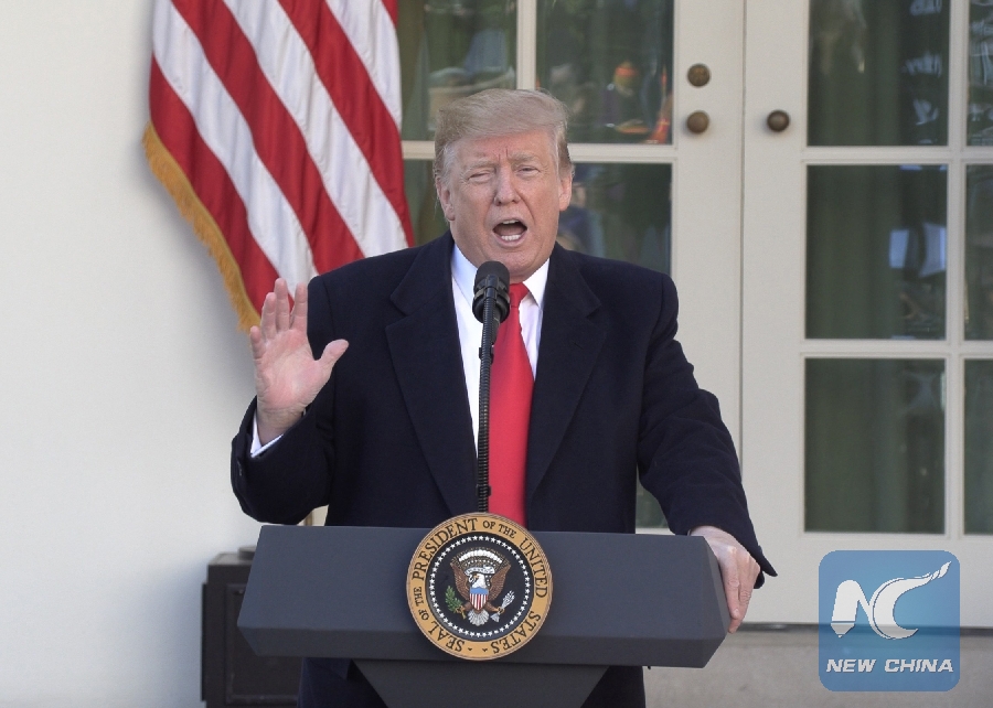 File Photo: U.S. President Donald Trump speaks at the White House in Washington D.C., the United States, on Jan. 25, 2019. (Xinhua/Hu Yousong)