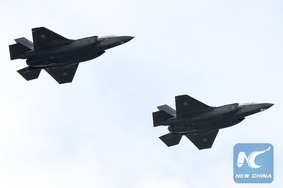 File photo taken on Oct. 14, 2018 shows F-35A fighter aircraft from the Japan Air Self-Defense Force taking part in a military review at the Ground Self-Defence Force's Asaka training ground in Asaka, Saitama prefecture. (Xinhua/AFP)