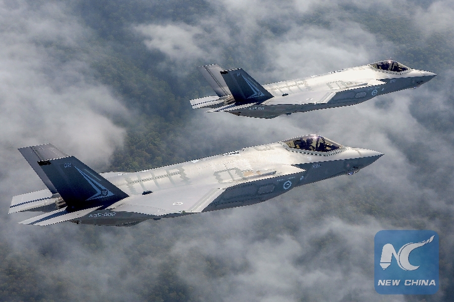 File Photo: Two Lockheed Martin Corp F-35 stealth fighter jets fly to the Avalon Airshow in Victoria, Australia, March 3, 2017. (Xinhua/REUTERS)