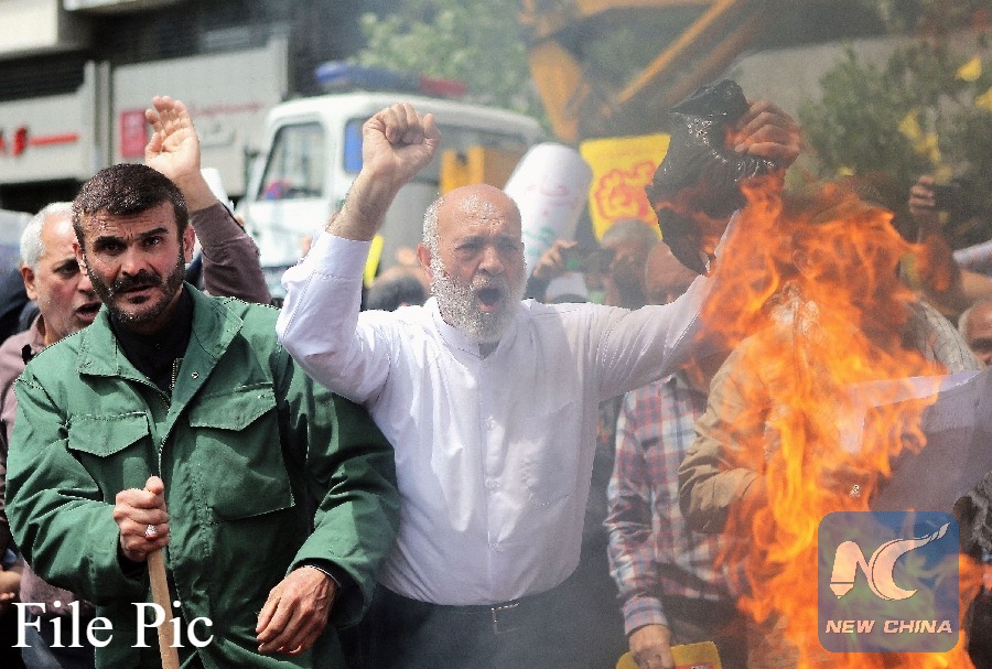 People take part in a protest to condemn U.S. withdrawal from the 2015 Iran nuclear deal in Tehran, Iran, on May 11, 2018. (Xinhua File photo)