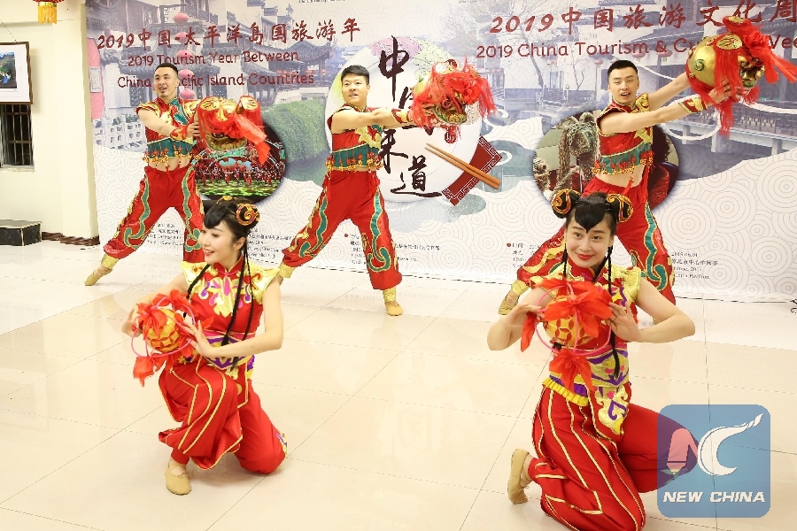 Chinese artists from north China's Ningxia Hui Autonomous Region perform during the China Tourism & Culture Week and Food Festival held in Suva, Fiji, May 29, 2019. (Xinhua/Zhang Yongxing)
