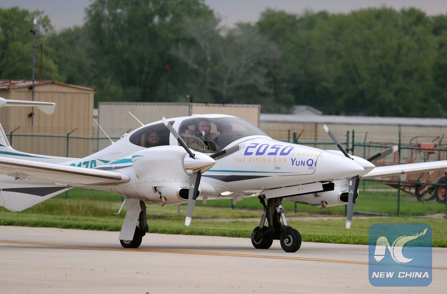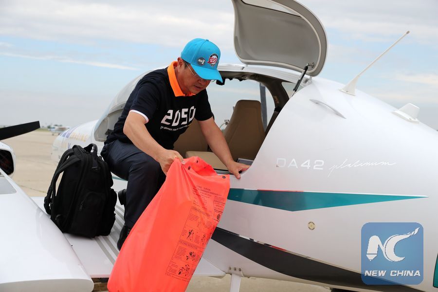 CHICAGO, June 9 (Xinhua) -- After flying 68 days and making 50 stops, 57-year-old Bo Zhang completed his second around-the-world flight and landed in Chicago on Sunday morning.