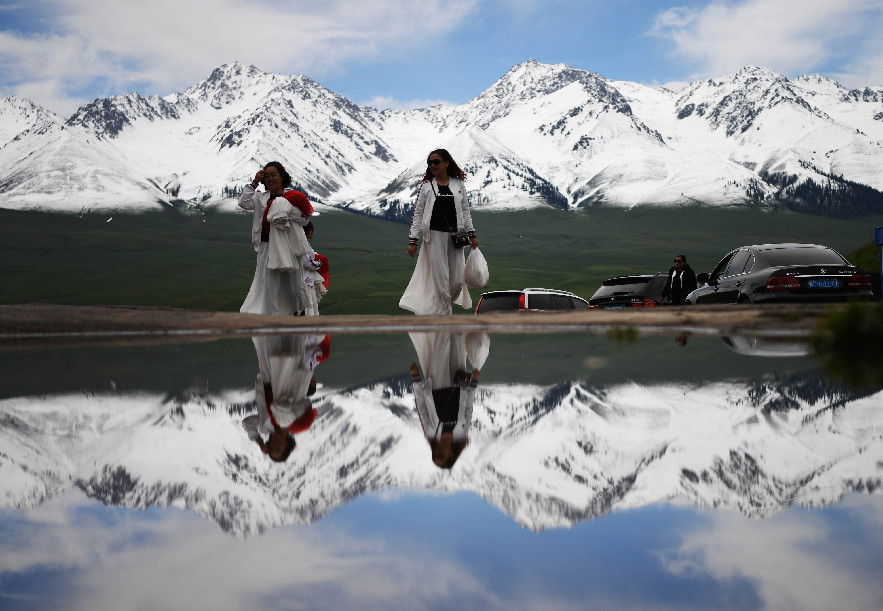 Tourists enjoy themselves at the Narat grassland scenic spot in the Kazak Autonomous Prefecture of Ili, northwest China's Xinjiang Uygur Autonomous Region, May 24, 2019. (Xinhua)