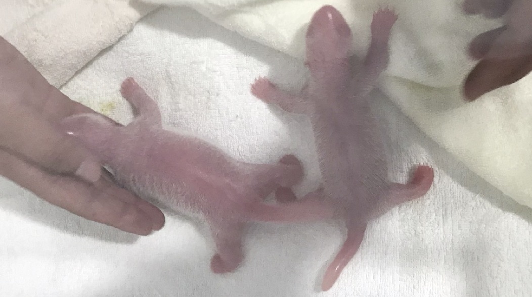 The 19-year-old mother, Zhu Zhu, underwent artificial insemination in March and her gestation period this time was 105 days. The staff at the base took immediate measures after the experienced mother started to show prenatal behaviors Tuesday.