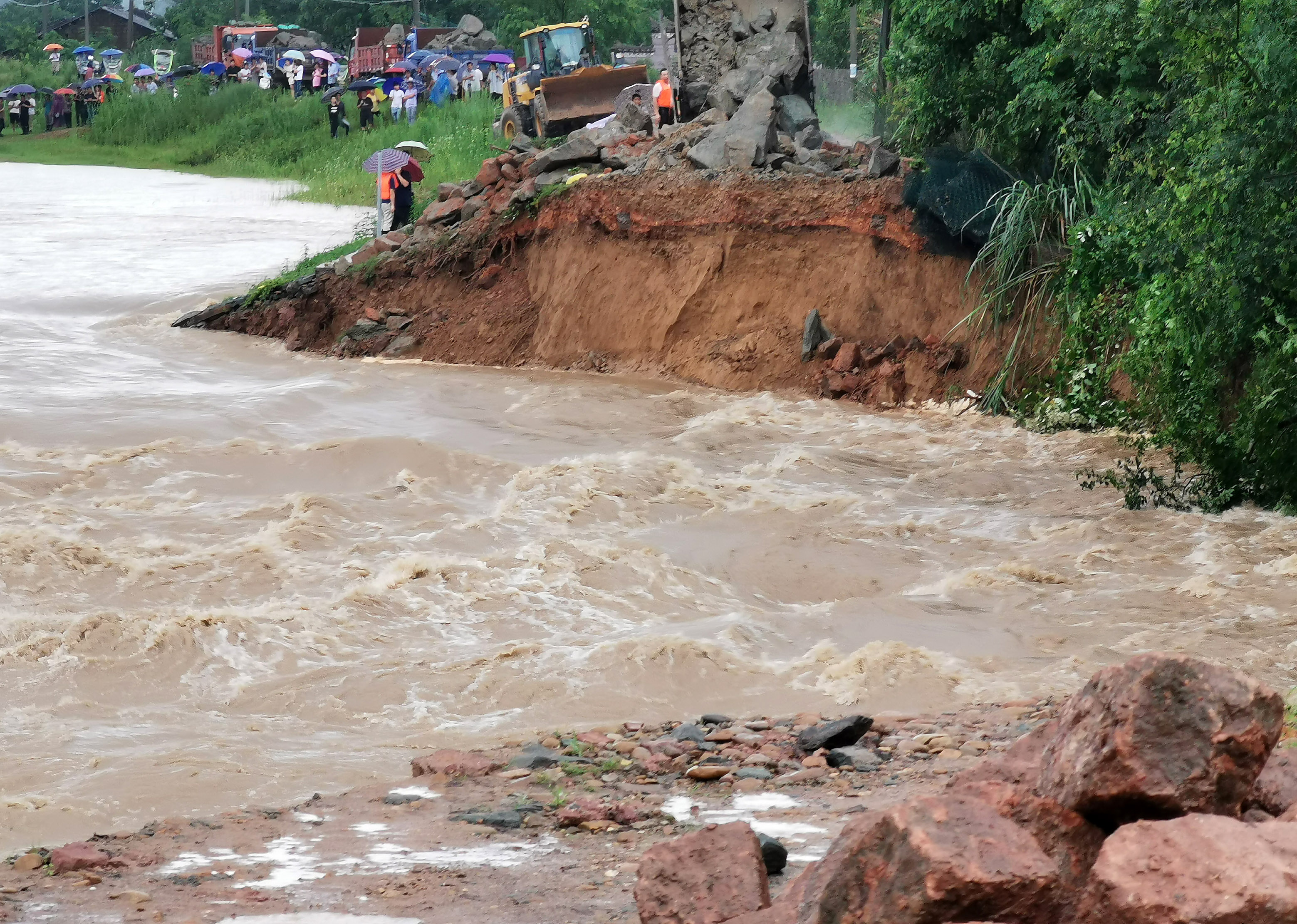The collapsed Maquan Dyke is seen at Maquan Township in Yingtan, east China's Jiangxi Province, July 9, 2019. (Xinhua/Wang Bin)