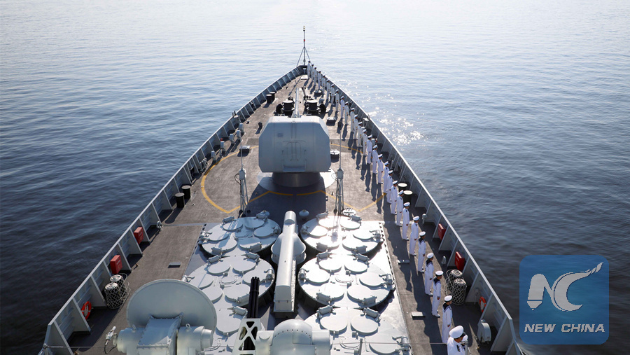 Chinese missile destroyer "Xi'an" participates in a military parade marking Russia's Navy Day in St. Petersburg on July 28, 2019. (Xinhua/Li Hao)