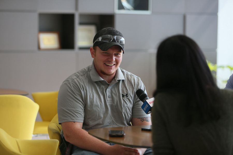 Christopher Cormack (L), an employee of Fuyao Glass America, speaks in an interview with Xinhua in Dayton of Ohio, the United States, on July 24, 2019. (Xinhua/Zhang Fengguo)