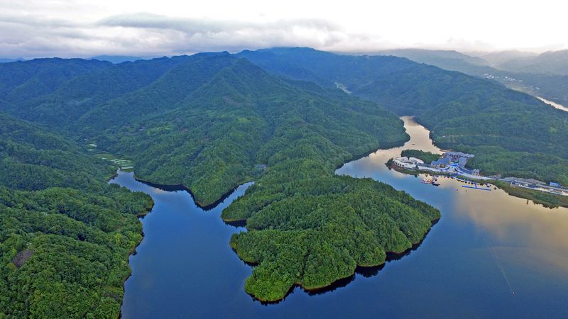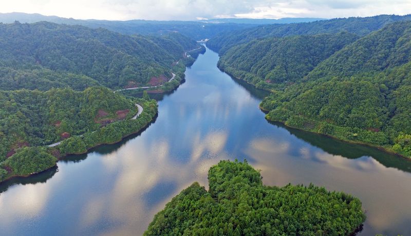 CHONGQING, Aug. 8, 2019 (Xinhua) -- Shades of deep green and blue create a placid picture of the Taiyang Lake in Shizhu Tujia Autonomous County, southwest China's Chongqing Municipality.