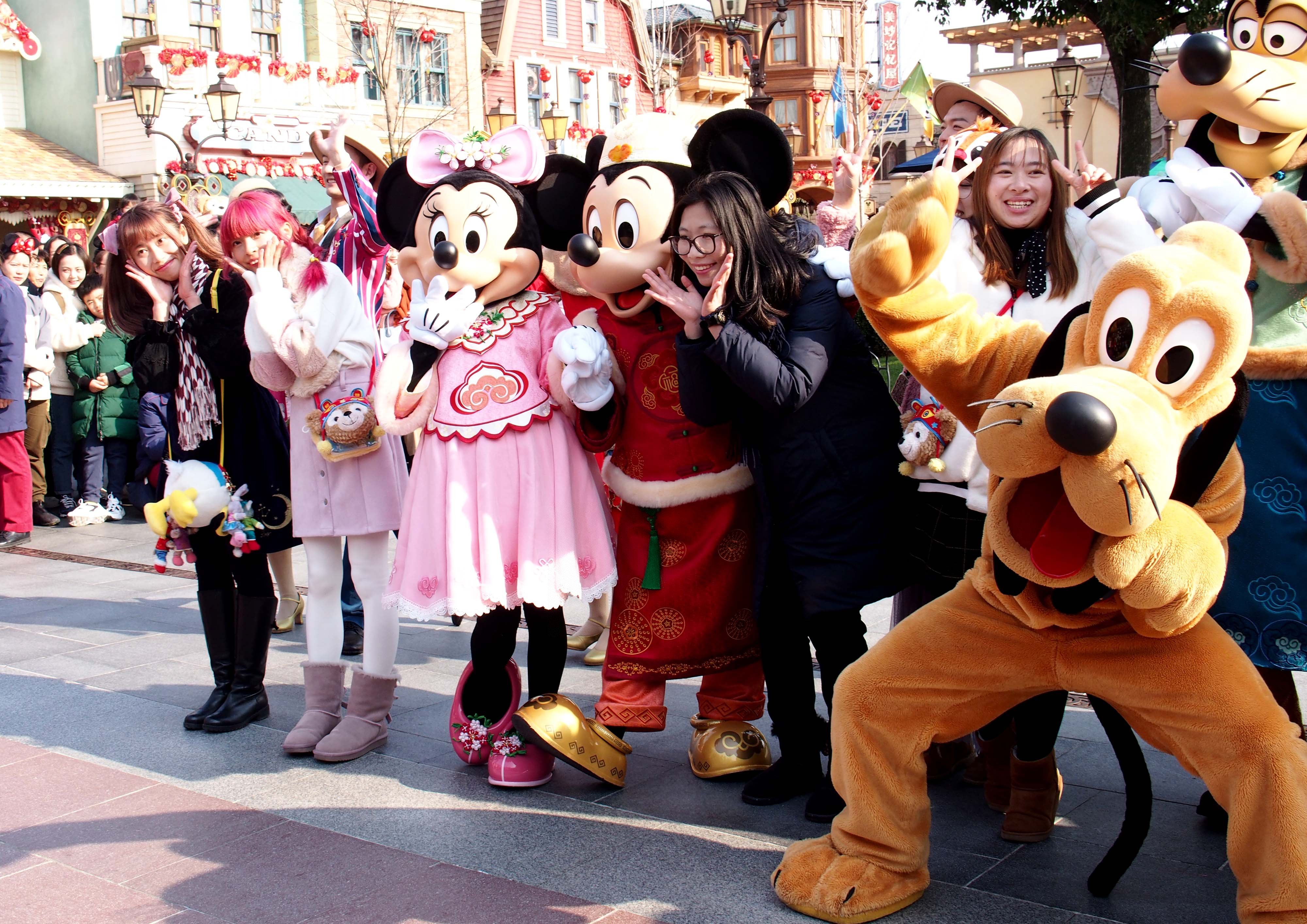 Tourists pose for photos with Disney characters at Shanghai Disneyland in Shanghai, east China, Jan. 21, 2019. (Xinhua/Ren Long)